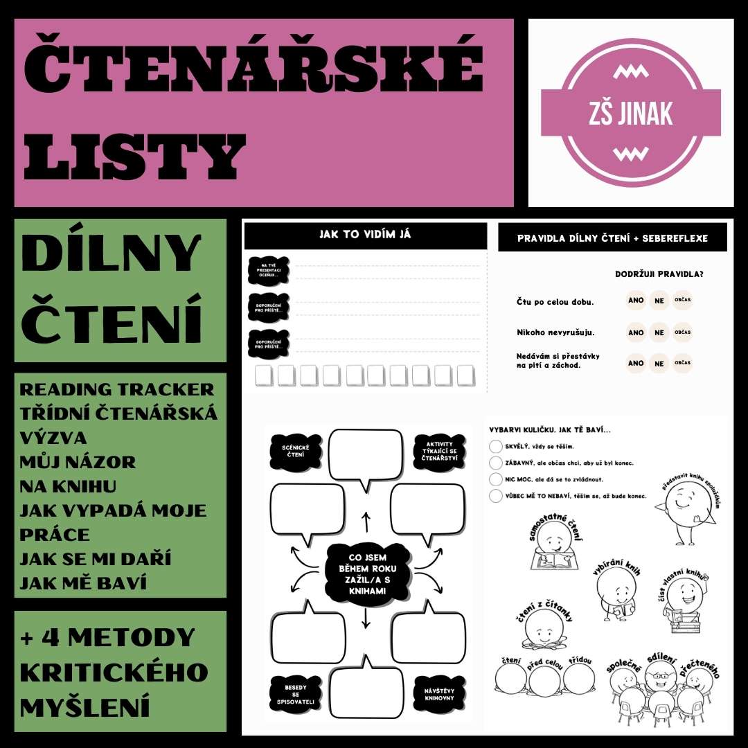 - 19 čtenářských listů, které využijete po celý školní rok (pravidla, vizitky, záznamy četby, sebereflexe, info o čtenáři a další…)