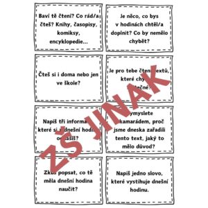 - Reflektivní karty do dílen čtení můžete využívat před začátkem hodiny, během ní nebo poslouží jako exitky na úplném konci. Pokud kartičky zalaminujete, děti mohou psát své odpovědi na druhou stranu.