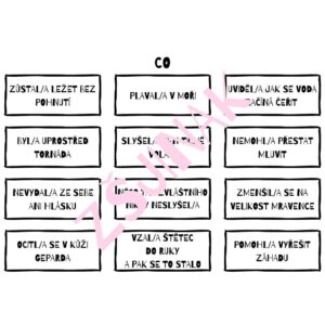 - Každé z dětí si vezme jednu kartičku z kupičky KDO (kdo vystupuje v příběhu) a domyslí například CO (co se v příběhu stane). V začátcích postačí dvě, tři věty.