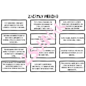 - Jednotlivé kartičky lze využívat i při minilekci. Rozdáte pouze kartičku se začátkem příběhu a děti vymyslí větu, která by mohla následovat. To samé uděláte ve skupince, kdy každý žák vymyslí další větu tak, aby příběh dával smysl. Lekci pak můžete ukončit nebo se věty stanou začátkem příběhu všech dětí ve skupince.